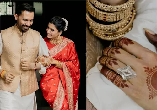 రూమర్స్ సృషించే వాళ్ళకి వాల్యూ ఇస్తూ స్టార్ హీరోయిన్ సమంత(సమంత),ప్రముఖ దర్శకుడు రాజ్ నిడిమోరు(రాజ్ నిడిమోరు)నిన్న వివాహ బంధంతో కొత్త జీవితానికి స్వాగతం పలికిన విషయం తెలిసిందే. తమిళనాడు కోయంబత్తూర్ లోని లింగ భైరవి ఆలయంలో వివాహం జరగగా ఇరువైపు సన్నిహితులు హాజరై నూతన దంపతులను ఆశీర్వదించారు. వివాహ వేడుకలో సమంత ,రాజ్ ధరించిన కాస్ట్యూమ్స్ అభిమానులనే కాకుండా ప్రతి ఒక్కరిని ఎంతగానో ఆకట్టుకున్నాయి. ముఖ్యంగా సమంత తన చేతికి ధరించిన డైమండ్ రింగ్ ప్రత్యేక ఆకర్షణగా నిలిచింది. దీనితో అభిమానులతో పాటు నెటిజెన్స్ వారి డైమండ్ రింగ్ ప్రత్యేకతల గురించి ఇంటర్ నెట్లో సెర్చ్ చేస్తున్నారు.